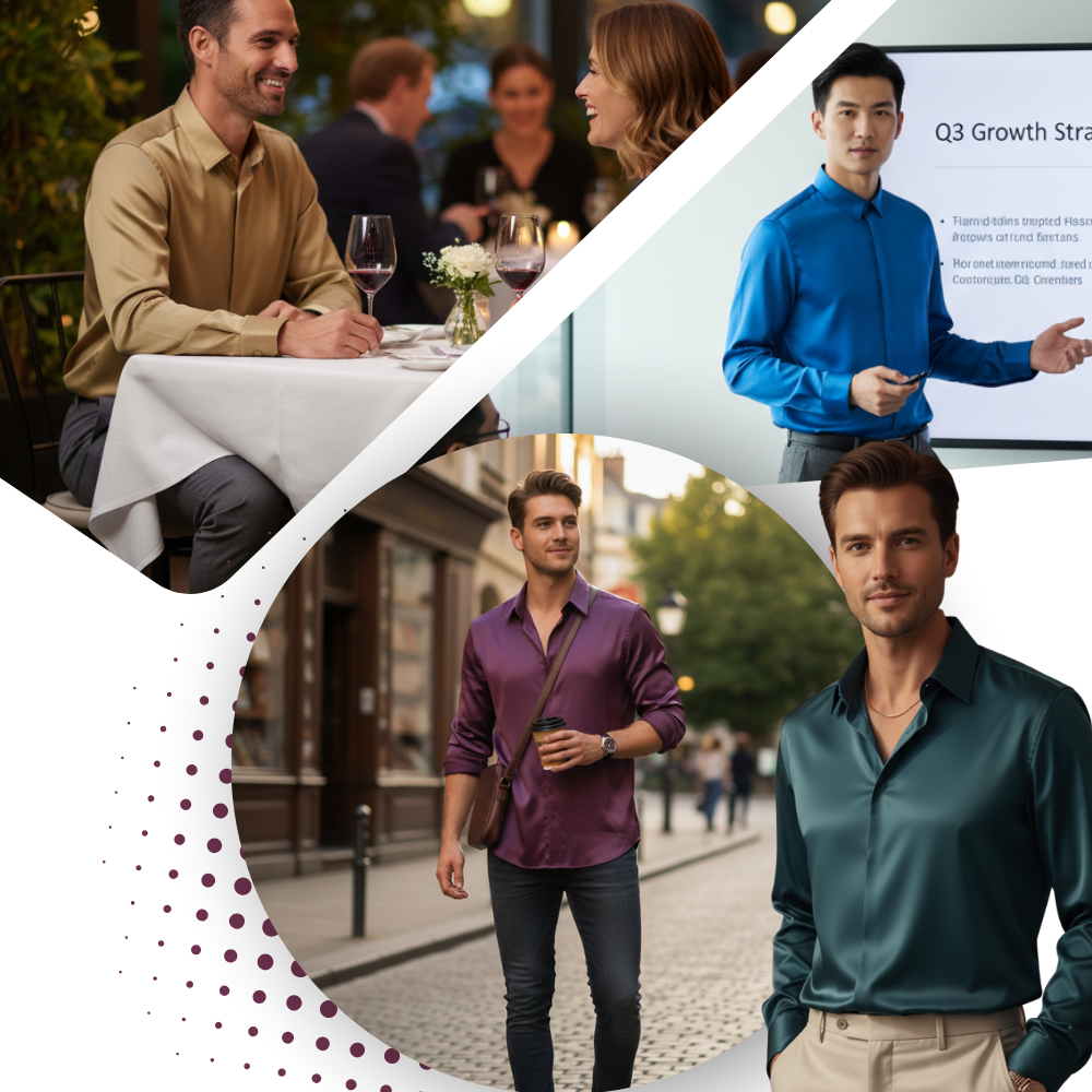 Dites adieu au repassage et bonjour au style sans effort. Cette chemise pour homme en soie mélangée infroissable est conçue pour l'homme moderne qui apprécie à la fois l'efficacité et l'élégance. Fabriqué à partir d'une technologie avancée de tissu infroissable, elle ne nécessite absolument aucun repassage : il suffit de la laver, de la suspendre et de la porter. Le tissu résiste naturellement aux plis et aux froissements, conservant un aspect lisse et fraîchement repassé, des réunions du matin aux événements du soir. Que vous voyagiez, fassiez une présentation ou dîniez au restaurant, vous aurez toujours l'air élégant et serein sans jamais toucher un fer à repasser : une sophistication sans effort tissée dans chaque fibre.