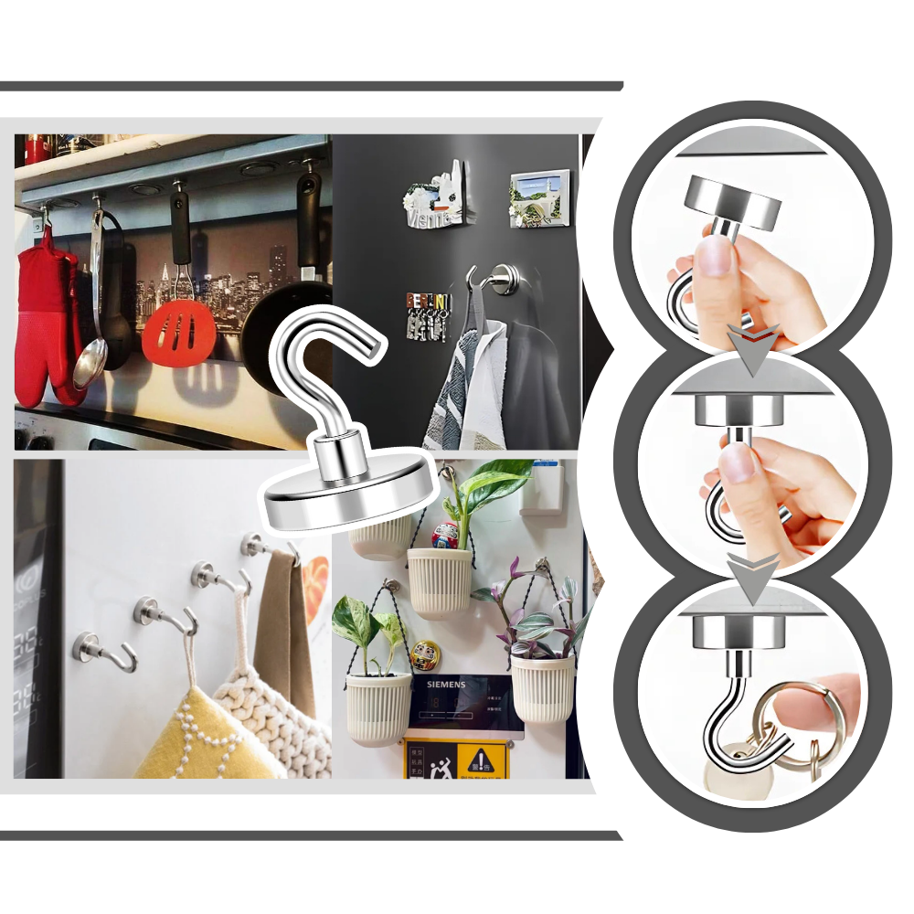 Conçus pour une utilisation polyvalnte, les crochets magnétiques sont résistants aux intempéries et conservent leur solidité dans diverses conditions. Le triple revêtement résistant à la corrosion protège contre la pluie, l'humidité et l'air salin. Idéal pour les bateaux, les camping-cars, les terrasses et les cuisines extérieures. Que vous campiez, voyagiez ou travailliez dans un environnement très humide, ces crochets restent fiables et garantissent que vos objets restent bien en place, quelle que soit la météo.