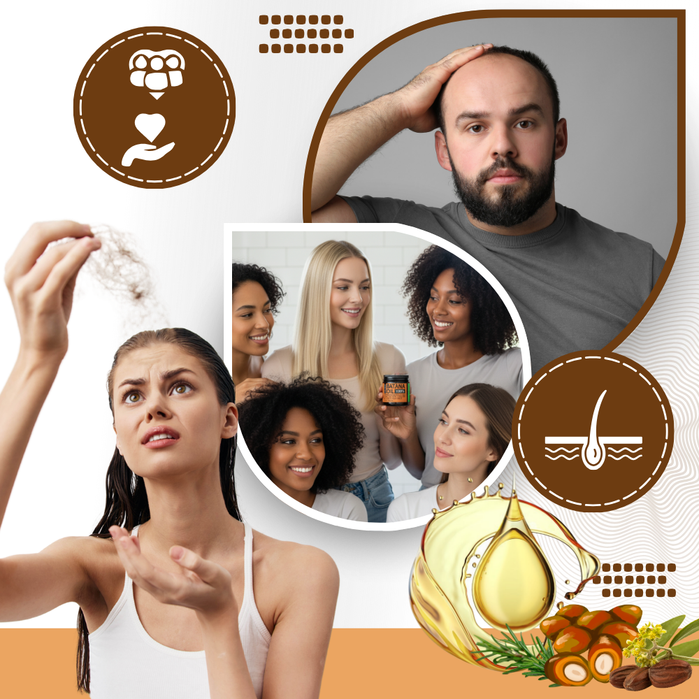 Ingrédients puissants : huile de Batana, huile de Jojoba, huile d'Argan, huile de Romarin