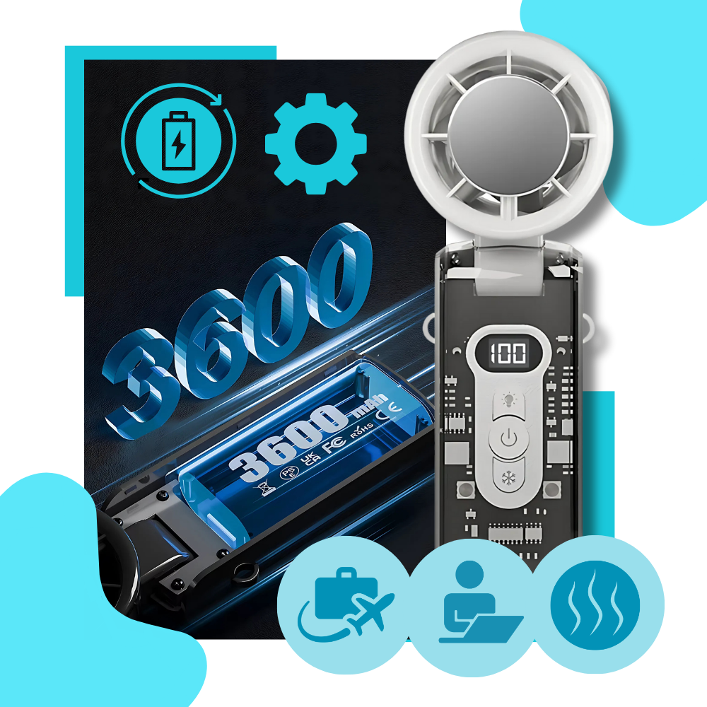 Oubliez les ventilateurs qui s'éteignent quand vous en avez le plus besoin : ce mini ventilateur turbo est conçu pour durer. Alimenté par une batterie rechargeable robuste de 3 600 mAh, il offre des performances intelligentes en fonction du réglage : profitez de jusqu'à 12 heures en mode 1 pour un flux d'air silencieux et constant, 4 heures et 20 minutes en mode 50 pour un refroidissement équilibré et 2 heures en mode 100 à pleine puissance lorsque vous avez besoin d'un maximum de fraîcheur. Grâce à la recharge rapide pratique via USB-C, vous serez rapidement prêt à repartir. Que vous soyez en déplacement, en voyage, au travail ou que vous essayiez simplement de rester au frais malgré la chaleur, ce ventilateur vous accompagne sans contraintes tout au long de la journée.