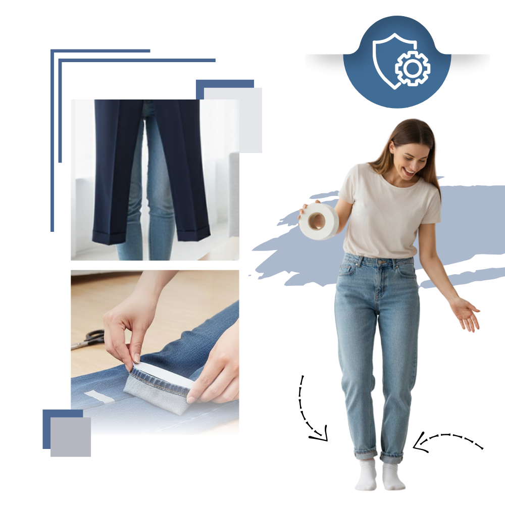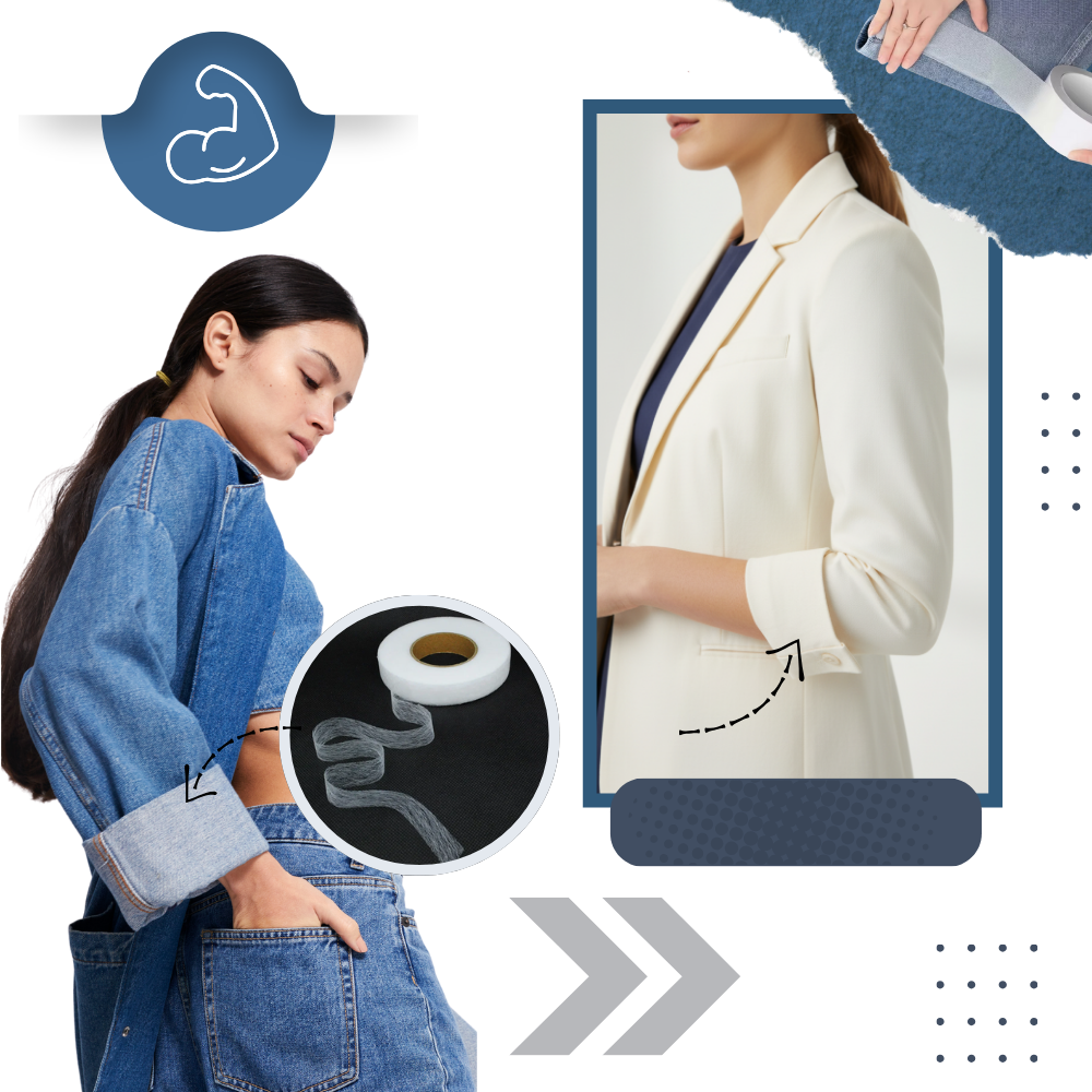 Une fois fixé, l'adhésif crée une fixation solide et durable qui maintient les ourlets en place tout au long de la journée. Il adhère uniformément aux fibres du tissu, réduisant ainsi le risque de décollement ou de déplacement au fil du temps. Que vous modifiiez un pantalon de travail, un jean décontracté ou un uniforme scolaire, cette adhérence fiable garantit que les vêtements restent impeccables et bien ajustés, même en cas de mouvements et d'utilisation fréquents.