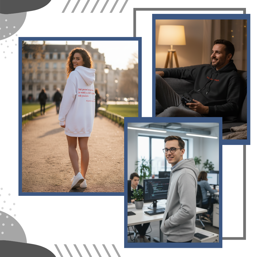 Dans un monde où tant de personnes luttent en silence contre l'anxiété, la dépression et le doute de soi, ce sweat à capuche devient plus qu'un simple vêtement : c'est un acte discret de compassion. Au cœur de son design se trouve un message subtil mais puissant, soigneusement placé au dos du sweat à capuche. Ce n'est pas seulement de la mode, mais de l'affirmation positive tant pour la personne qui le porte que pour tous les passants qui pourraient porter un fardeau invisible. C'est une façon douce de dire à quelqu'un, sans prononcer un mot, que sa vie compte et qu'il est vu et compris. Ce sweat à capuche diffuse de la chaleur à plus d'un titre : c'est un rappel doux et portable que la gentillesse est gratuite et que vous avez le pouvoir de la partager avec le monde chaque fois que vous sortez.